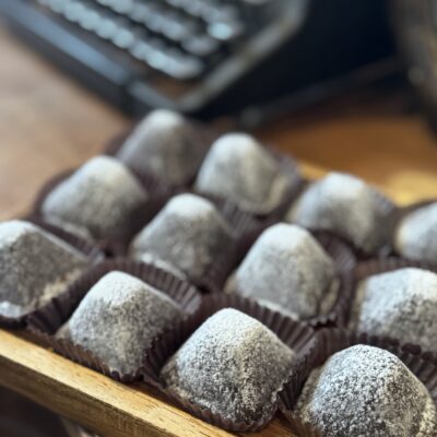 Following the harvests of late spring, summer & fall, we make limited edition open-faced truffles with our chocolate mousse, local fruits, veggies & herbs. Made to be eaten within a day or two of their creation.